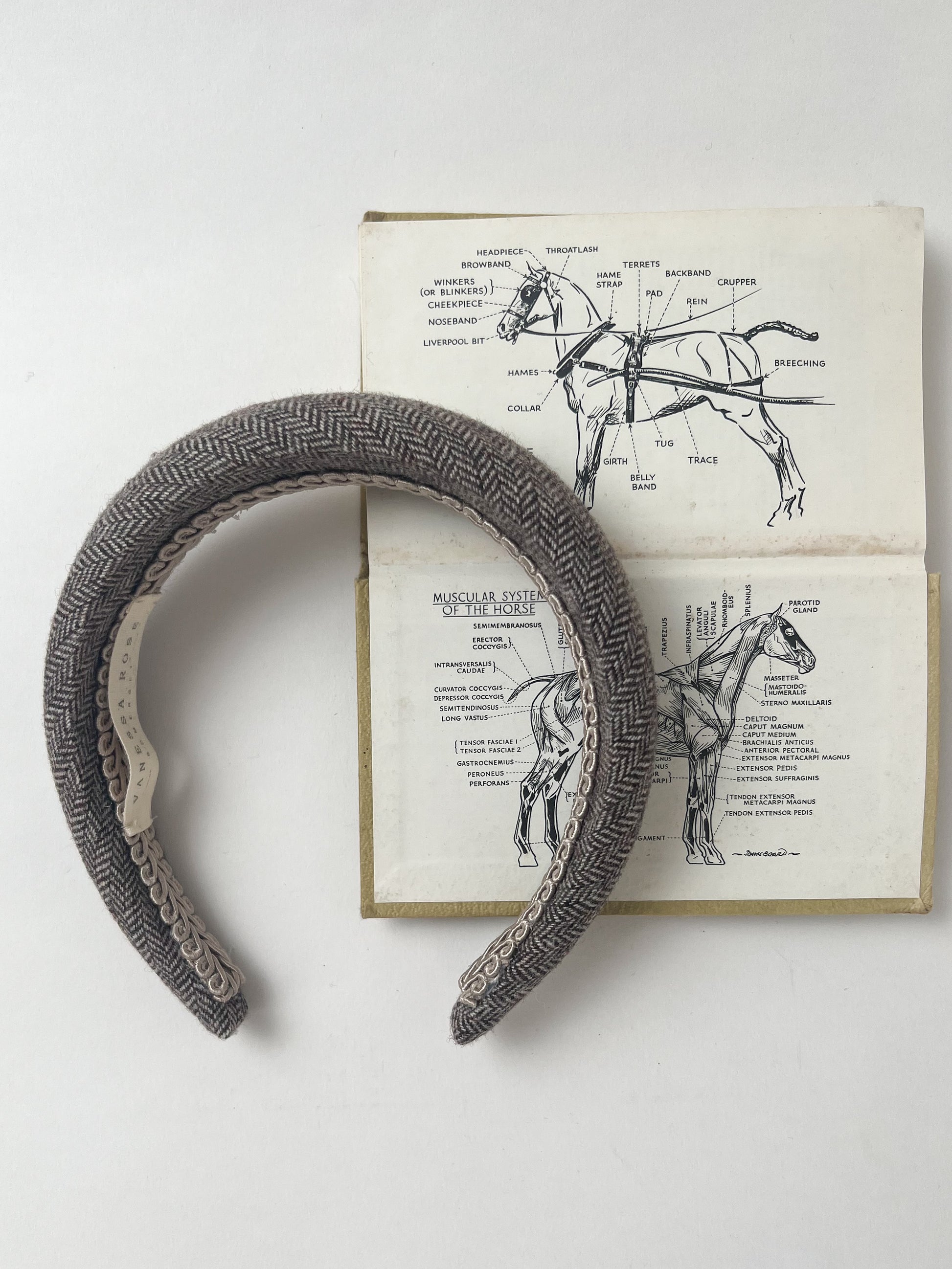Brown Herringbone Wool Padded Headband handmade in our Somerset studio, is crafted from a wool blend and lined with luxurious, anti-slip cotton herringbone ribbon.